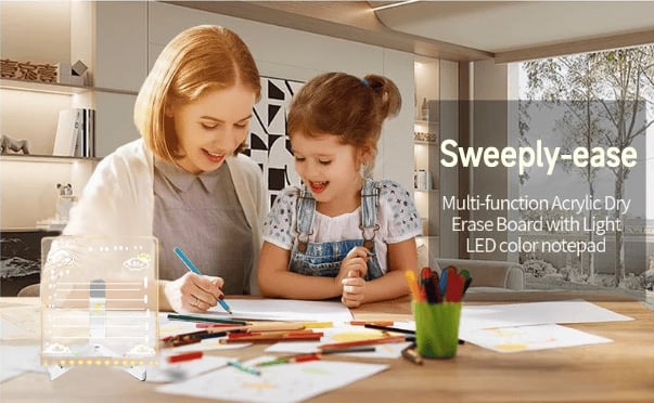 [Away from Screens] Clear acrylic dry erase board with light, it's cute and light design makes it appealing to children of all ages. You can create your artwork directly with 7 highlighters. It's not just a toy, but also a learning tool that stimulates creativity, imagination, concentration, and thinking ability. Keep your kids away from electronic screens.