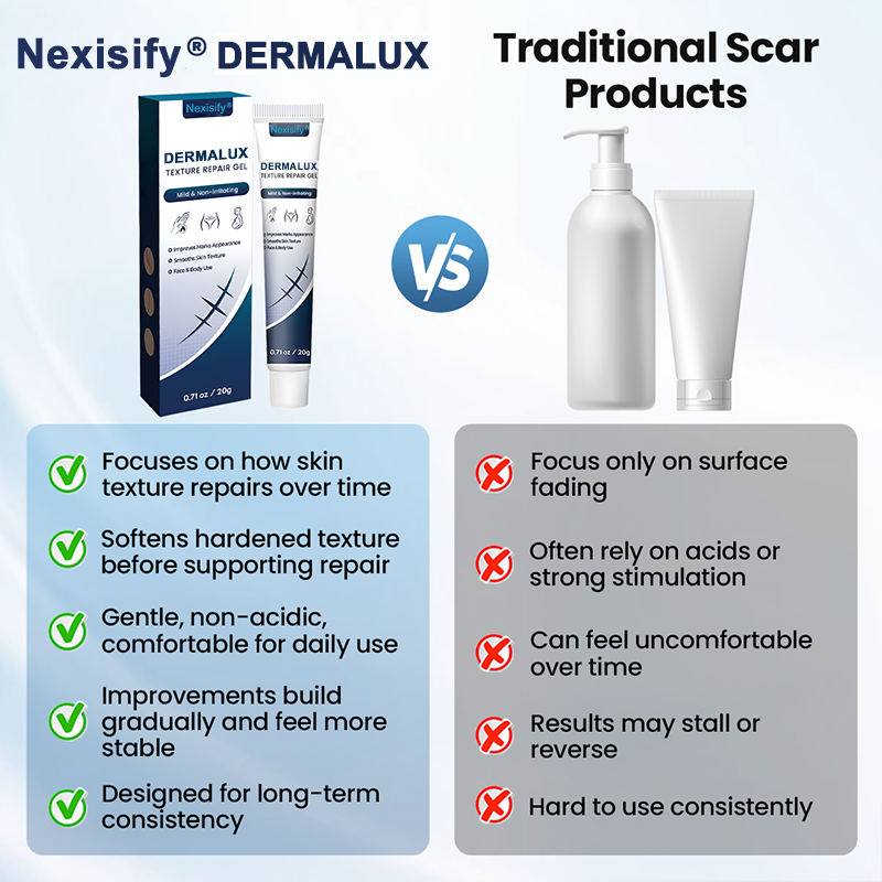 Nexisify® DERMALUX Texture Repair Gel is dermatologist-reviewed, safety-tested, and manufactured in an FDA-registered facility to ensure consistent quality. Trusted nationwide, over 90% report softer, smoother skin within weeks. Gentle, effective, and designed for long-lasting improvement.
