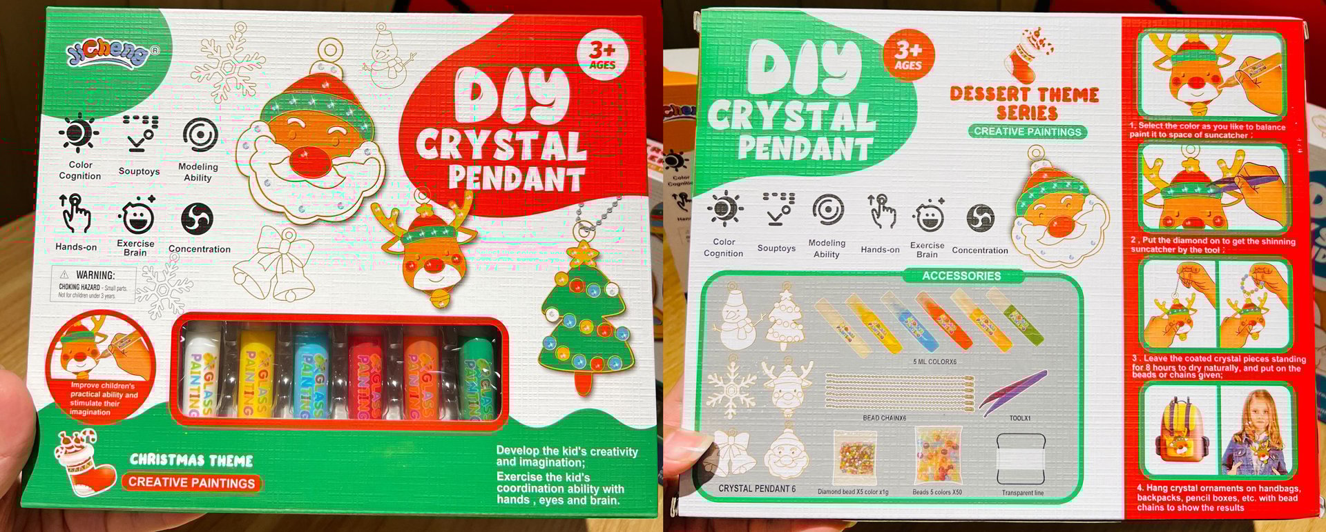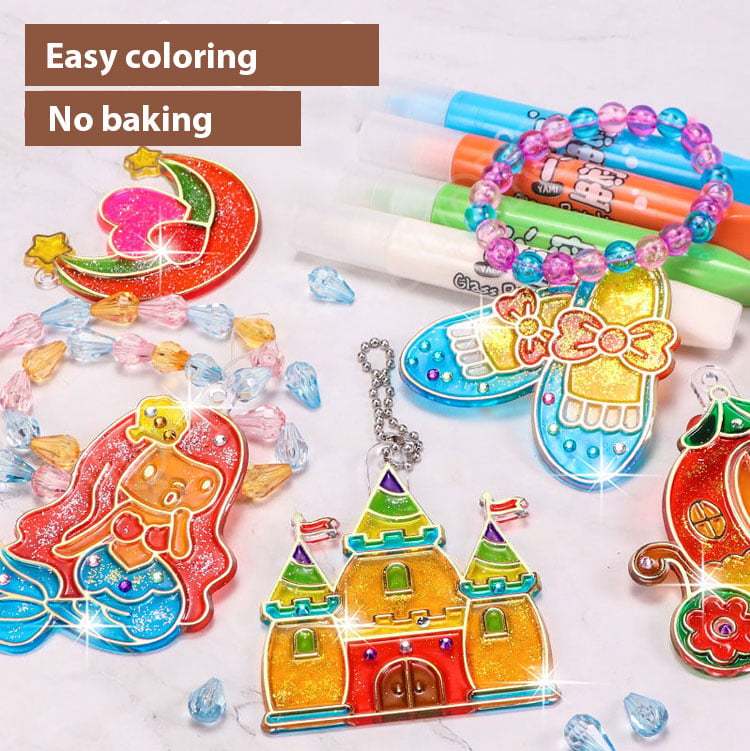 - Package Includes: 6 crystal pendants. 6 color paints. 6 chains. tweezers. 3 packs of diamonds. 1 pack of color beads. and 1 clothesline