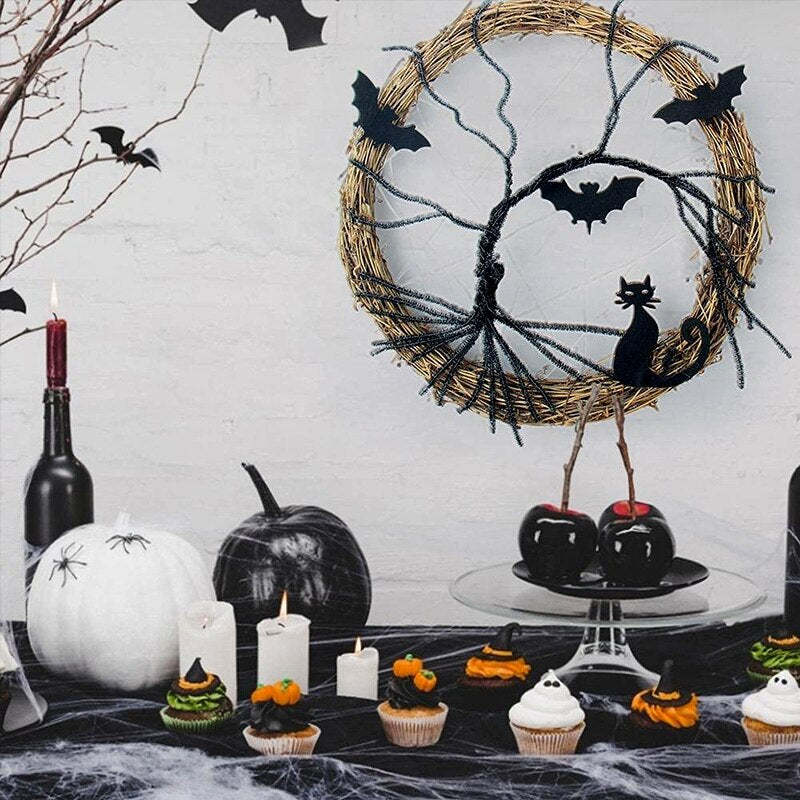 【Happy Halloween】This Wreath is the perfect way to dress up your door all year long, especially during Halloween! Scary flying bats and cute cat hiding in the forest and we invite you to join the crazy Halloween party in the castle. Feel free to hang this door decoration on your front door and inviting people to knock on the door. Lets enjoy a happy Halloween.