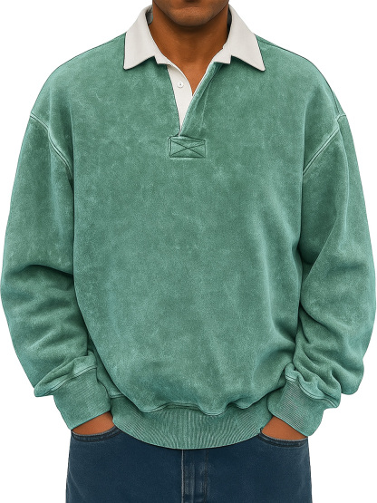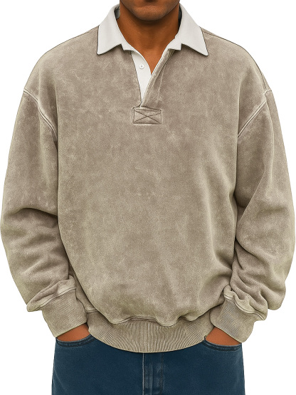 Men's Retro Lapel Button Colorblock Casual Distressed Sweatshirt